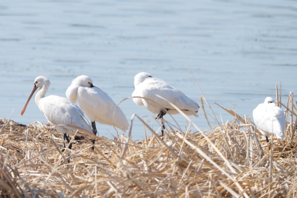 | ヘラサギ (左二羽) クロツラヘラサギ (右二羽) |