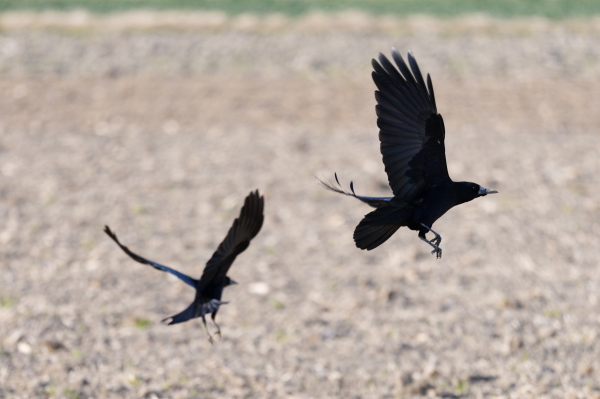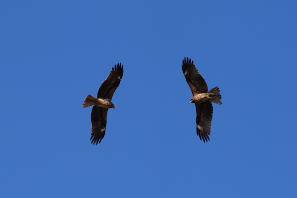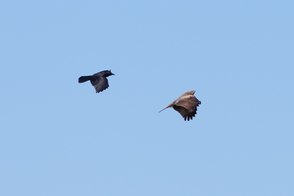 | トビとカラス 遊んでいるか 喧嘩しているのかな |