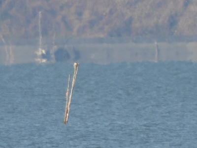 | 杭の先端にハヤブサ 望遠で見ても解らないけど 観察力がある方がいると一段と 観察できます |