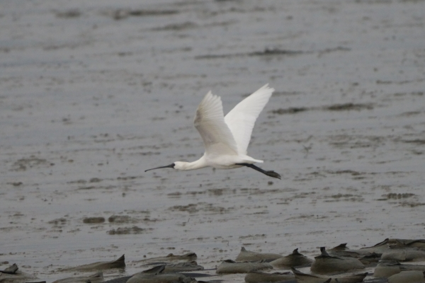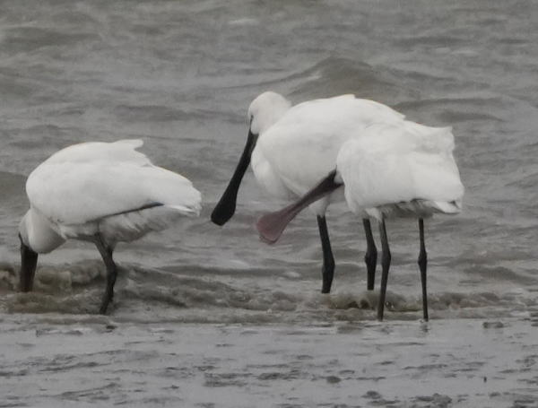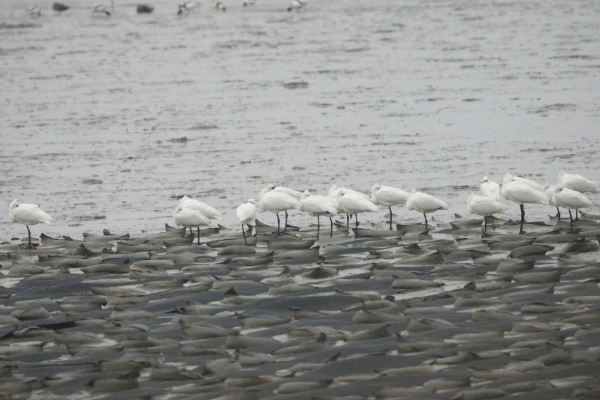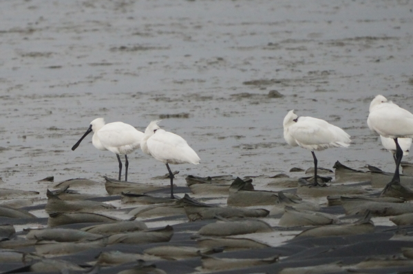 クロツラヘラサギもある程度近くにいましたが、潮が引くと食事出来る水際へ数羽づつ